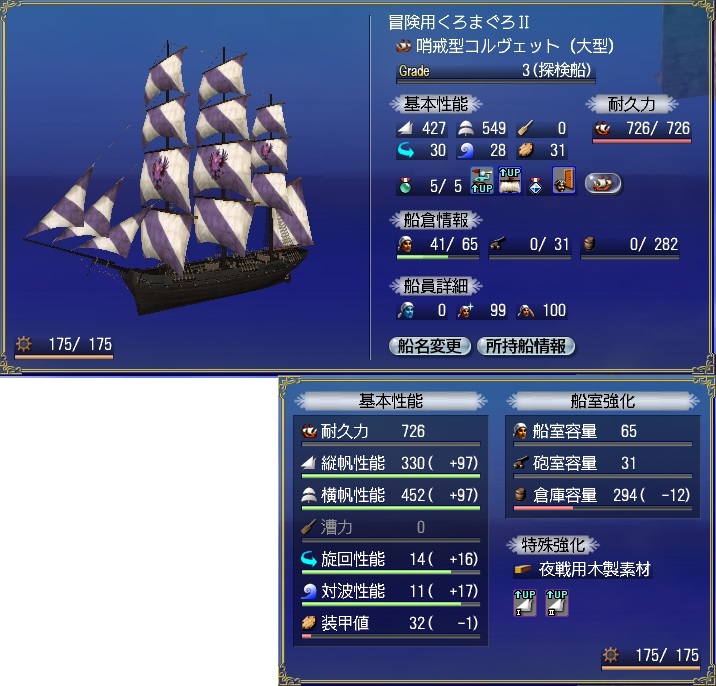 帆数値には余裕があり、旋回と対波はカンストできるかギリギリの状態だったので、こういう順番になりました