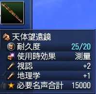 私がいつも背中に背負っている、「天体望遠鏡」(視認+2、地理学+1、使用時効果あり)も、そんなアイテムのひとつです。